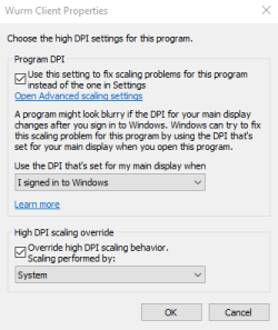 - Click the Change High DPI Settings button.